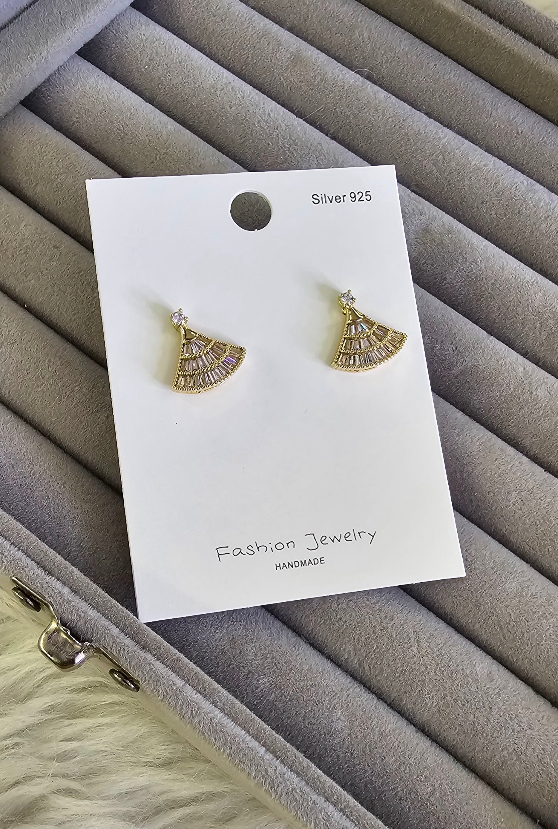 Chic fan-shaped studs featuring a brilliant arrangement of clear baguette and round-cut cubic zirconia stones.