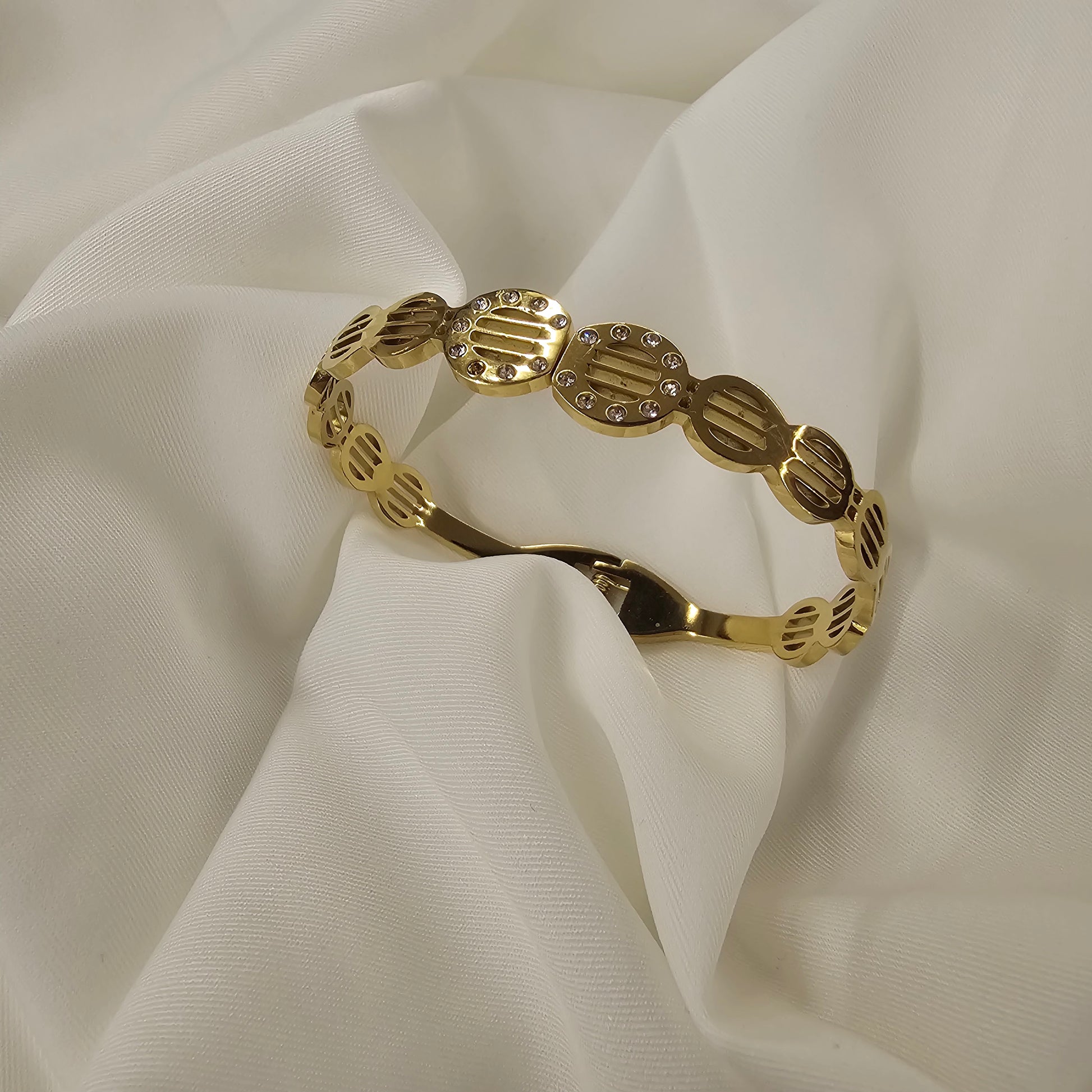 A stunning gold-toned linked bracelet featuring an alternating pattern of polished infinity-style links and links fully set with sparkling cubic zirconia accents.